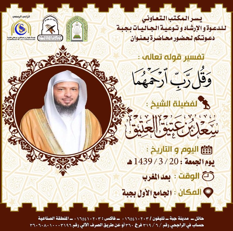 مجالس الرمال الرسمية On Twitter تفسير قوله تعالى وقل رب ارحمهما لفضيلة الشيخ سعد بن عتيق العتيق يوم الجمعة القادم 20 3 1439 هـ