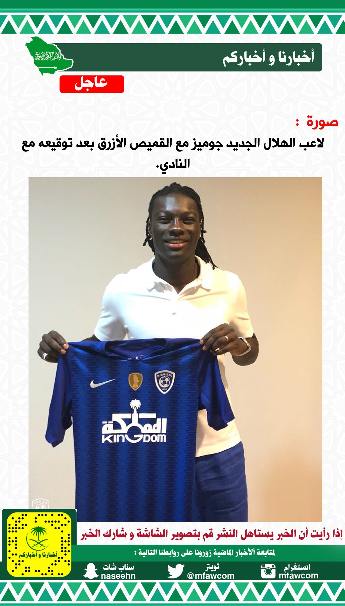 أخبارنا و أخباركم Ar Twitter لاعب الهلال الجديد جوميز مع القميص الأزرق بعد توقيعه مع النادي الهلال الرياضة السعودية