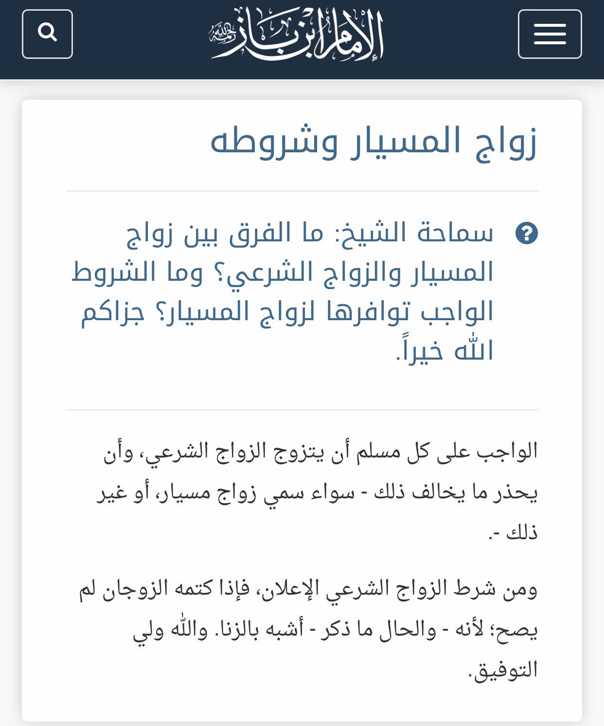 د صالحة آل شويل Salha Alshuweil Phd V Twitter حكم زواج المسيار لابن باز محرم ولايجوز لأن من شروط الزواج الإعلان وأغلب اللي يتزوجون يكتمونه عن الناس زواج معلن ابليكشن مسياركم Https T Co Vvxixnpquz