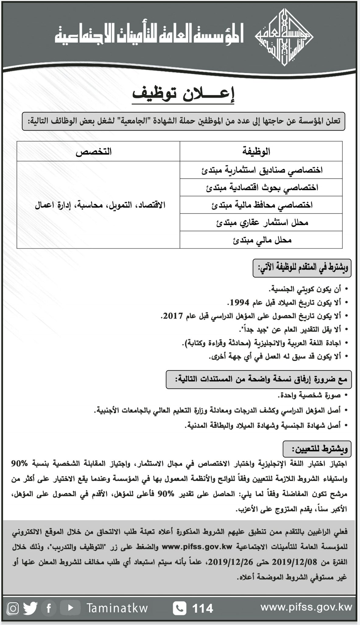 المؤسسة العامة للتأمينات الاجتماعية On Twitter وظائف شاغرة لحملة الشهادة الجامعية التأمينات الاجتماعية دولة الكويت وظائف شاغرة