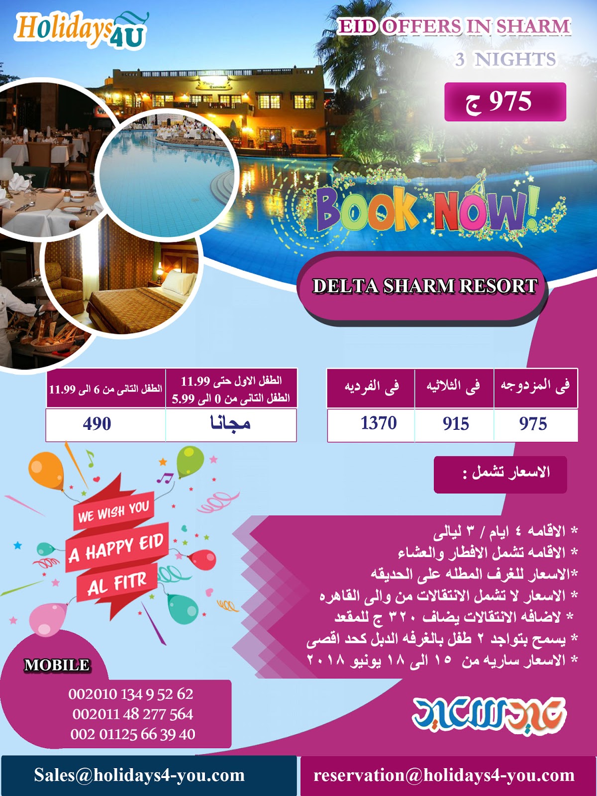 عروض رحلات عيد الاضحى 2020 رحلات العيد عروض رحلات عيد الفطر2020 رحلات عيد الفطر 2018 في شرم الشيخ فندق Delta Sharm Resort Spa